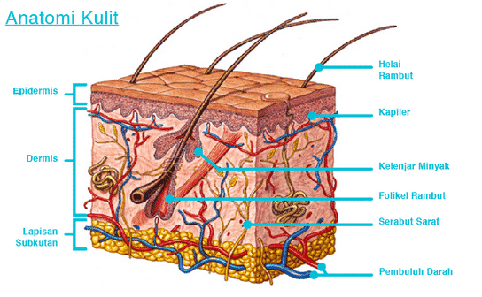 a. Gambar struktur Kulit manusia dan berilah keterangan nama bagian-bagiannya disertai proses pembentukan dan zat terbentuk?